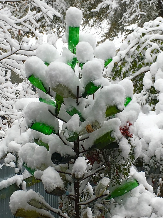 Green Bottle Snow Tree